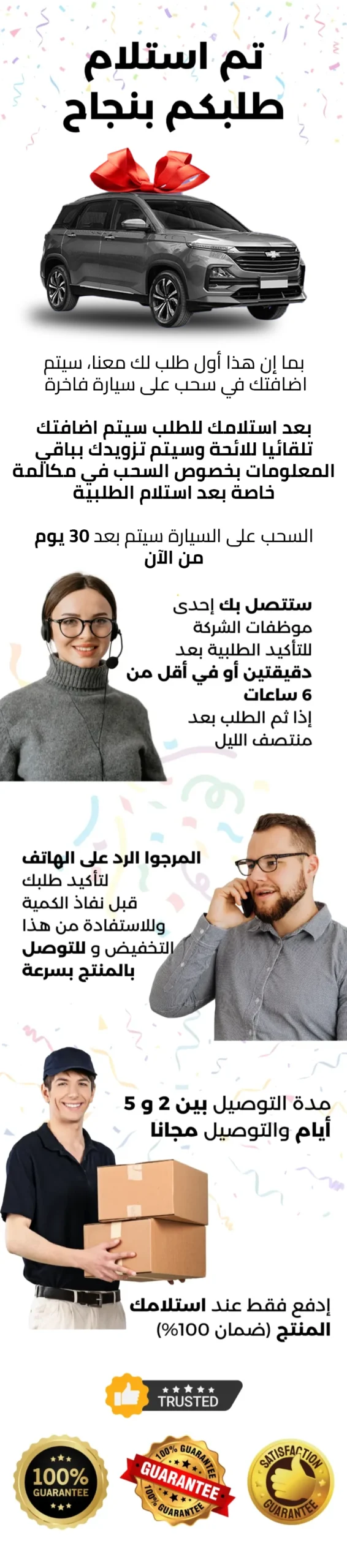 سوف نتصل بك من أجل تأكيد الطلبية، التوصيل يتم بين يوم الى 4 أيام كأبعد تقدير